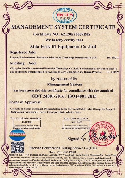 AIDA ha stabilito un rigoroso sistema di garanzia della qualità e ha superato la certificazione ISO9001, ISO14001, SGS e CE.